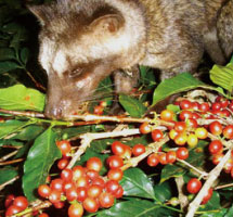 最成熟香甜、飽滿多汁的咖啡果實食用。果實經過其消化系統分解掉外表的果肉,然而堅硬